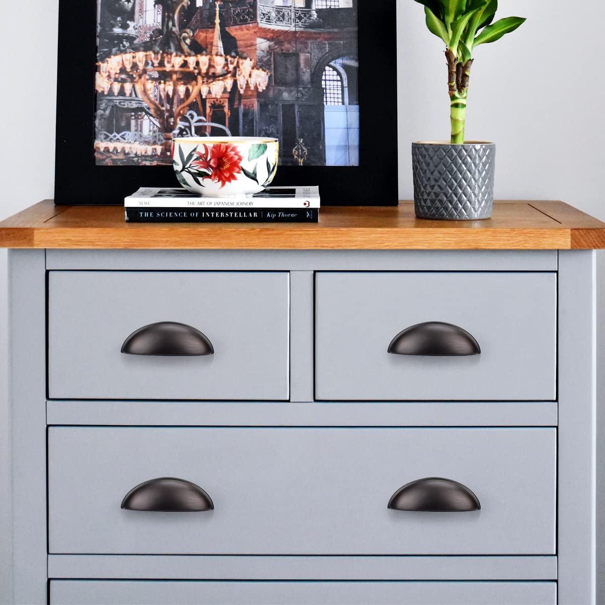 Probrico 10 Pack Brushed Nickel Cabinet Pulls Bin Cup Drawer Handles, Cabinet Cup Handles 3 Inch Holes Drawer Handles and Knobs, Kitchen Cabinet Hardware(Oil Bronze)