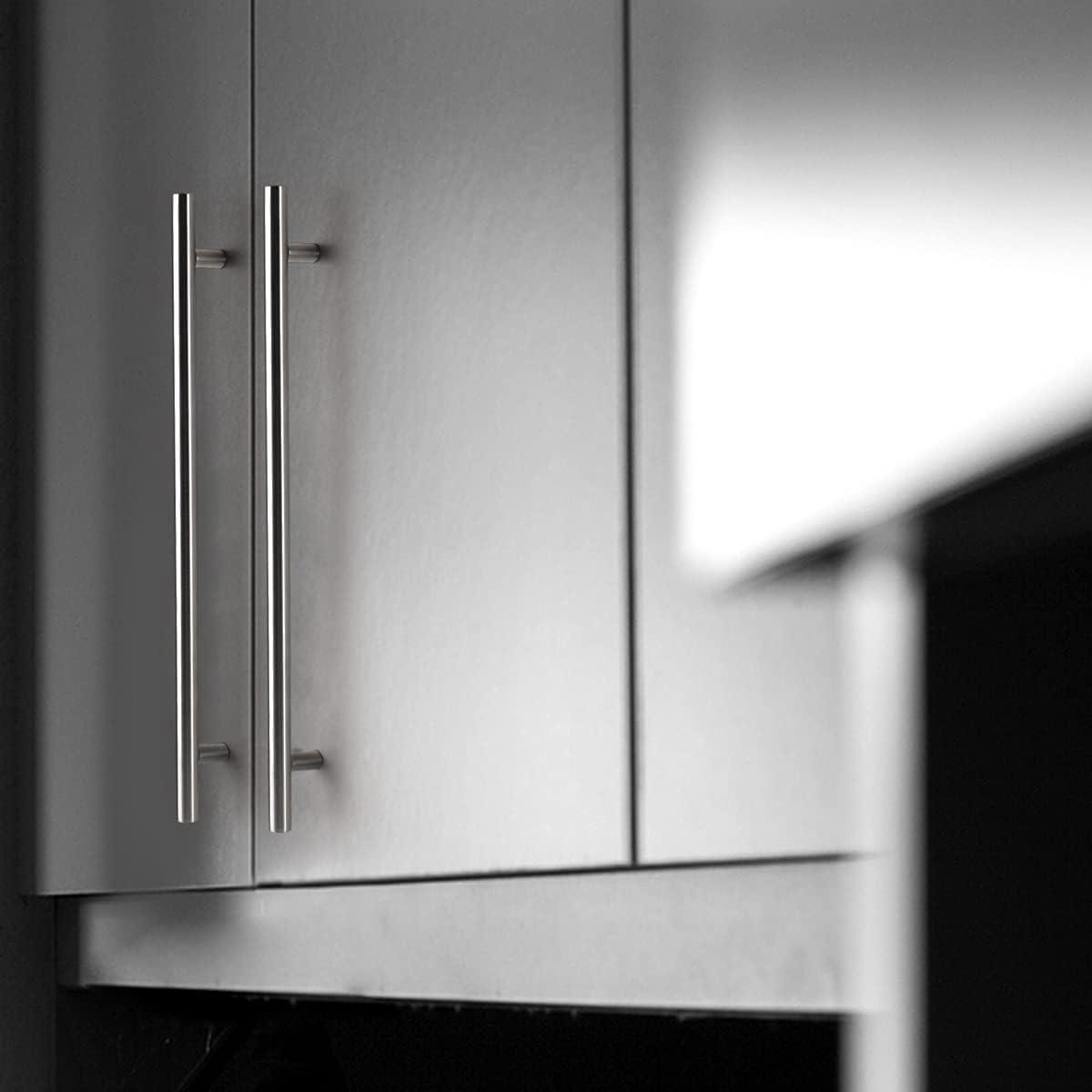 Probrico (100 Pack 3″ Hole Centers Euro T Bar Cabinet Pulls Satin Nickel Kitchen Cabinet Hardware Stainless Steel Bathroom Bedroom Dresser Drawer Handles, 5 Inch Total Length(hole center 10″)