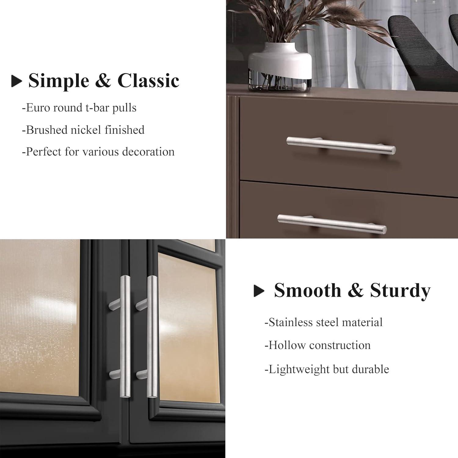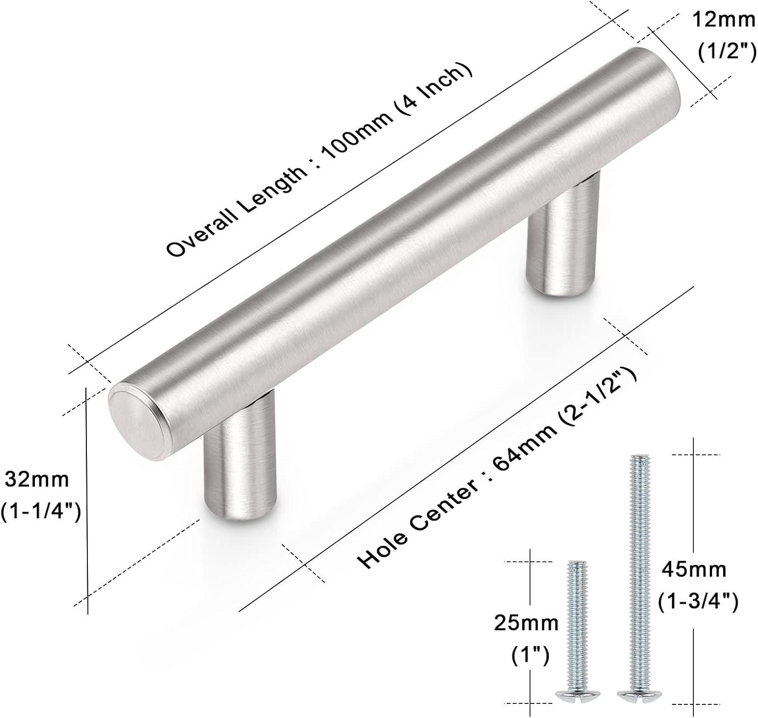 Probrico (100 Pack 3" Hole Centers Euro T Bar Cabinet Pulls Satin Nickel Kitchen Cabinet Hardware Stainless Steel Bathroom Bedroom Dresser Drawer Handles, 5 Inch Total Length(hole center 2-1/2")