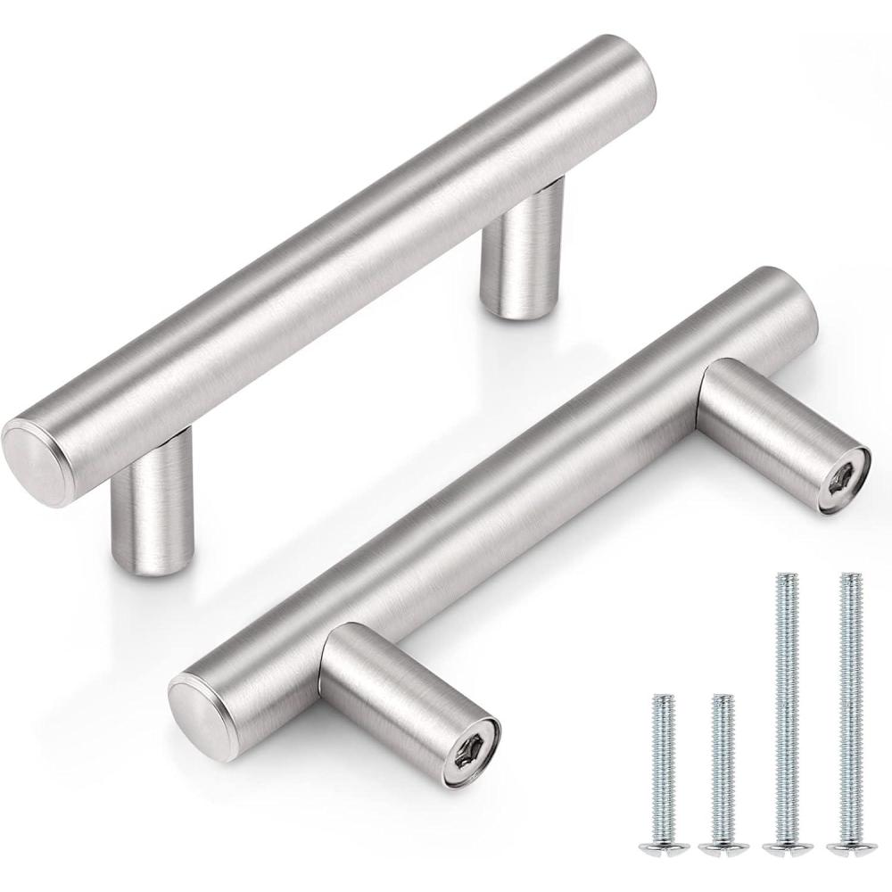 imageProbrico 100 Pack 3quot Hole Centers Euro T Bar Cabinet Pulls Satin Nickel Kitchen Cabinet Hardware Stainless Steel Bathroom Bedroom Dresser Drawer Handles 5 Inch Total Lengthhole center 212