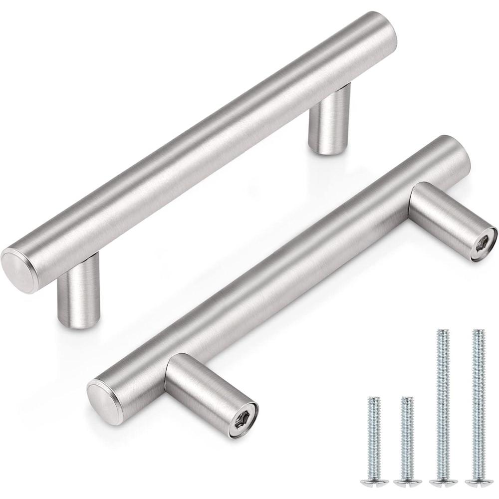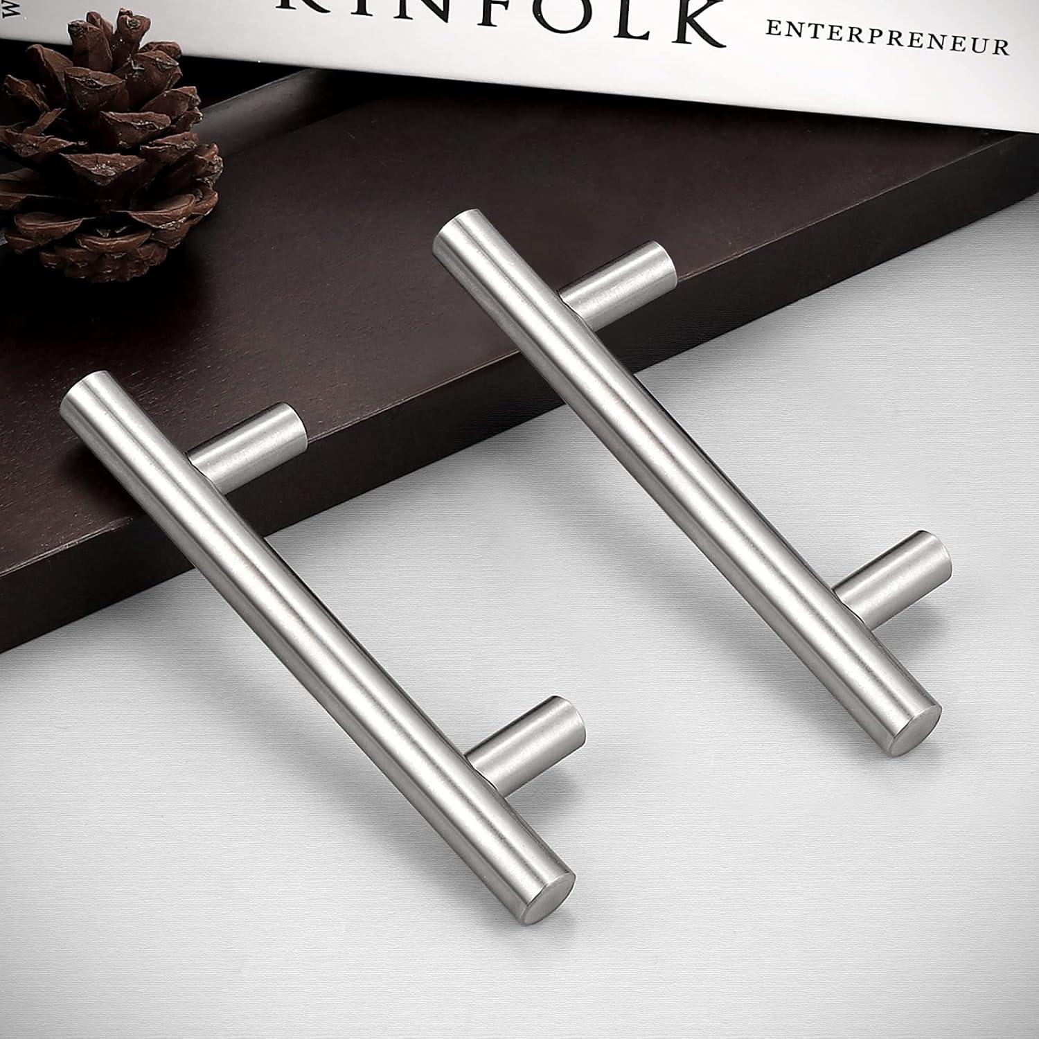 Probrico (100 Pack 3" Hole Centers Euro T Bar Cabinet Pulls Satin Nickel Kitchen Cabinet Hardware Stainless Steel Bathroom Bedroom Dresser Drawer Handles, 5 Inch Total Length(hole center 3")