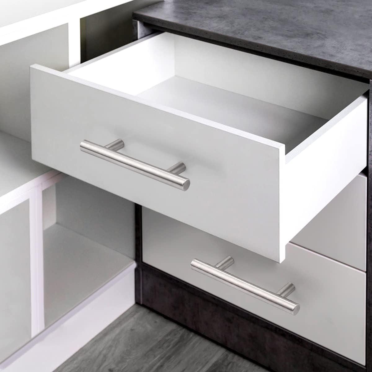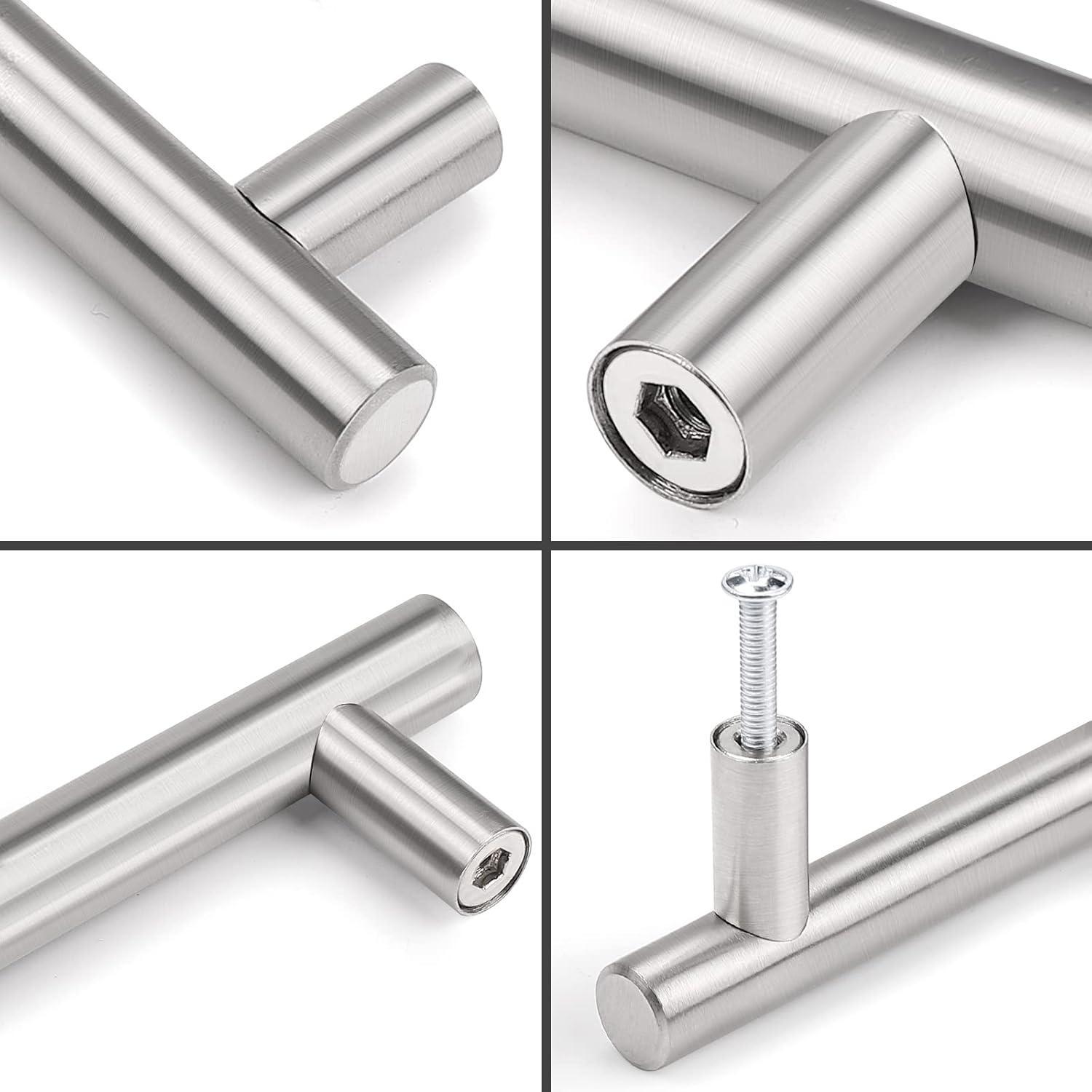 Probrico (100 Pack 3″ Hole Centers Euro T Bar Cabinet Pulls Satin Nickel Kitchen Cabinet Hardware Stainless Steel Bathroom Bedroom Dresser Drawer Handles, 5 Inch Total Length(hole center 3″)