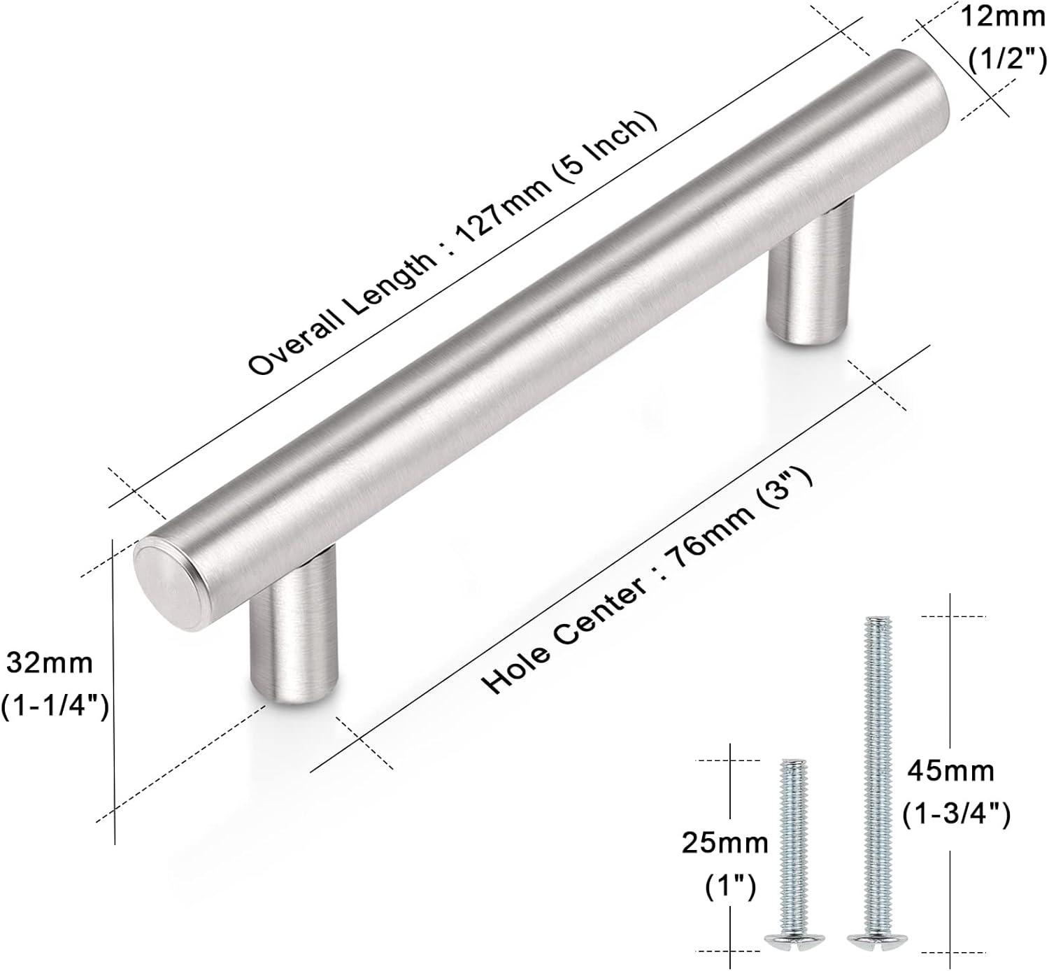imageProbrico 100 Pack 3quot Hole Centers Euro T Bar Cabinet Pulls Satin Nickel Kitchen Cabinet Hardware Stainless Steel Bathroom Bedroom Dresser Drawer Handles 5 Inch Total Lengthhole center 212