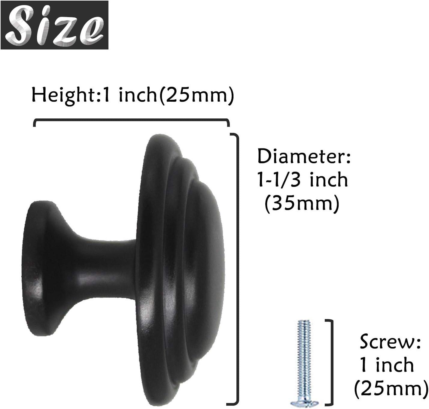 Probrico 25 Pack -Cabinet Knobs and Handles Black, Drawer Pulls Knobs for Dresser Closet Desk- 1-1/3 Inch Diameter(Black)