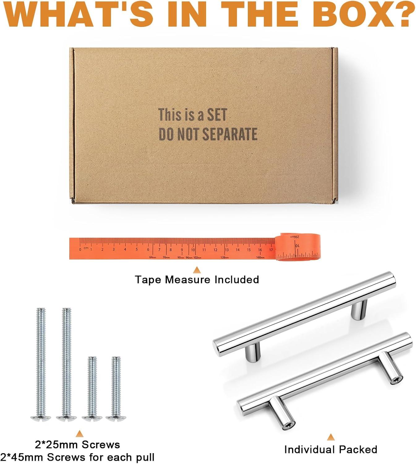 imageProbrico 5 Pack 10quot Center to Center Black Modern Cabinet Pulls Stainless Steel Cabinet Hardware Bedroom Drawer Pull Kitchen Cabinet T Bar Handle Dresser PullsPolished Chrome