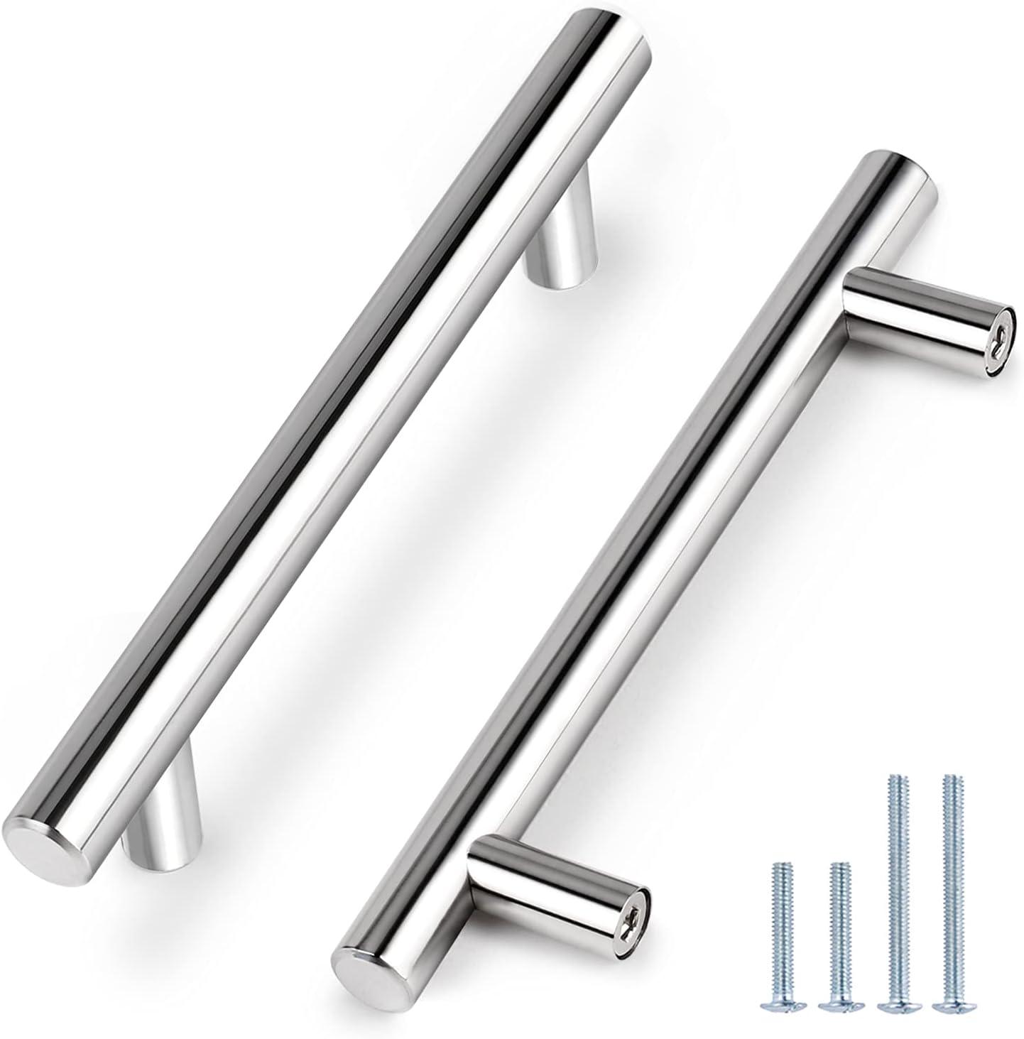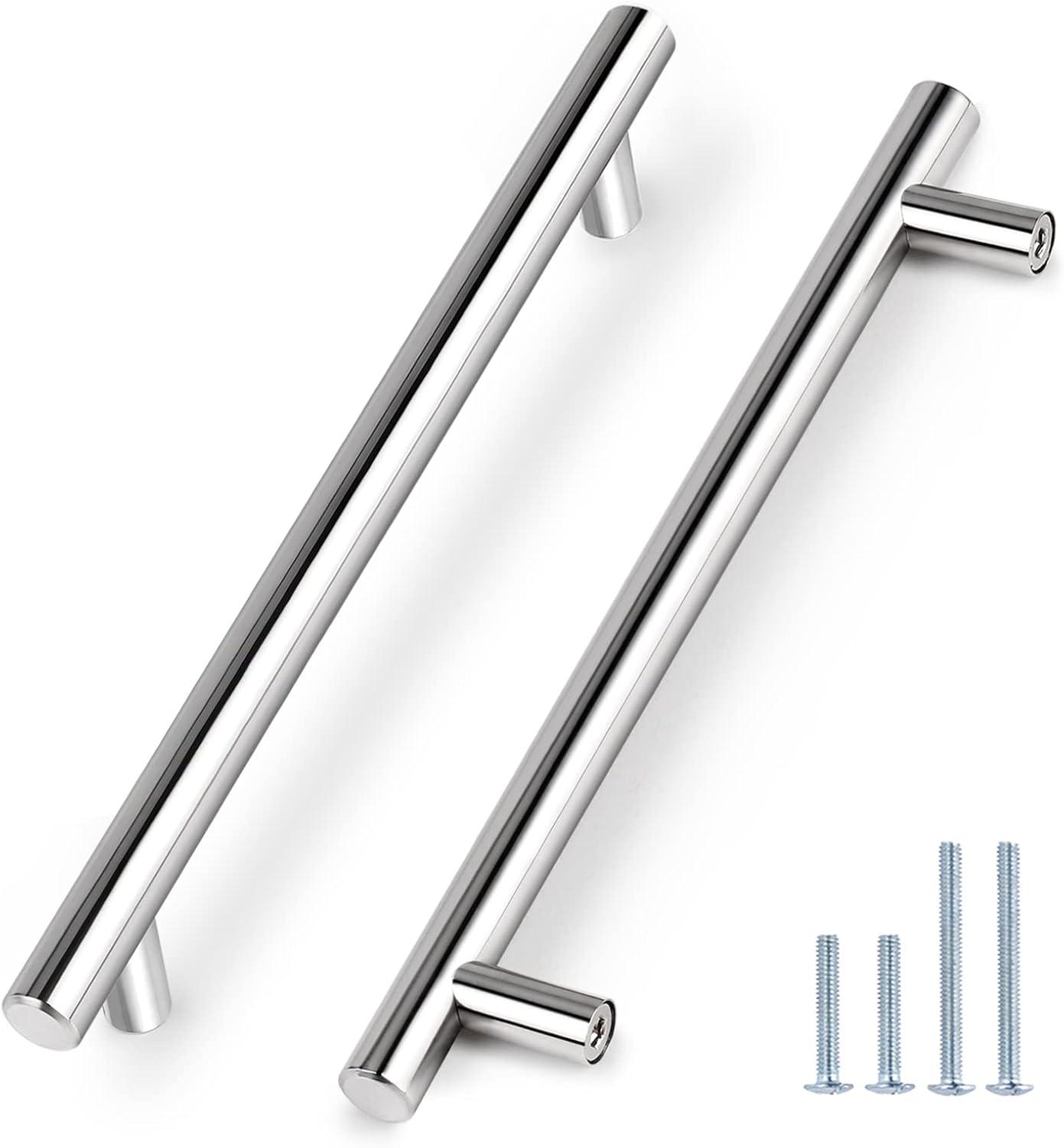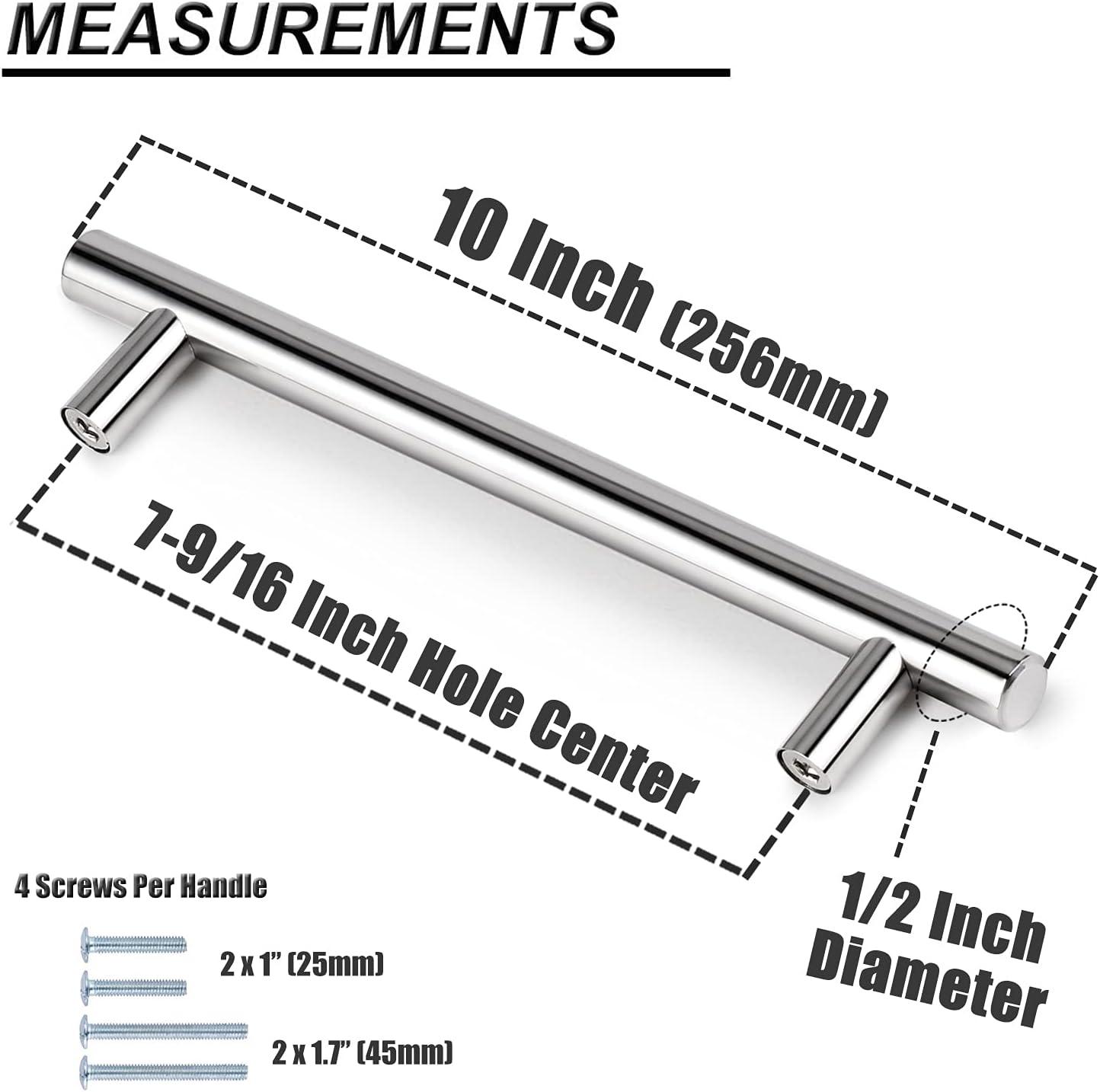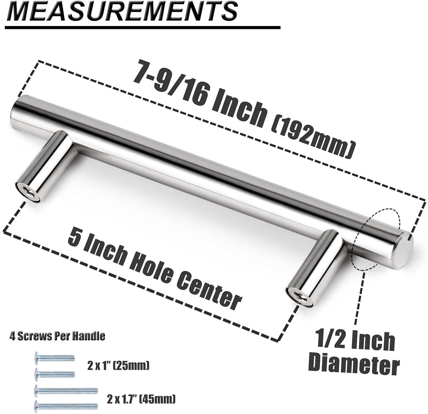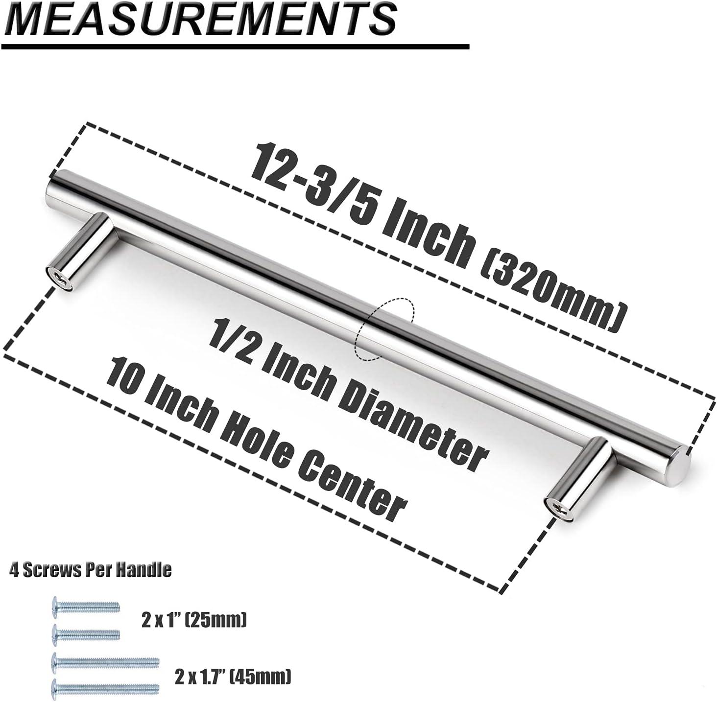 Probrico (5 Pack 10" Center to Center Black Modern Cabinet Pulls Stainless Steel Cabinet Hardware Bedroom Drawer Pull Kitchen Cabinet T Bar Handle Dresser Pulls(Polished Chrome)
