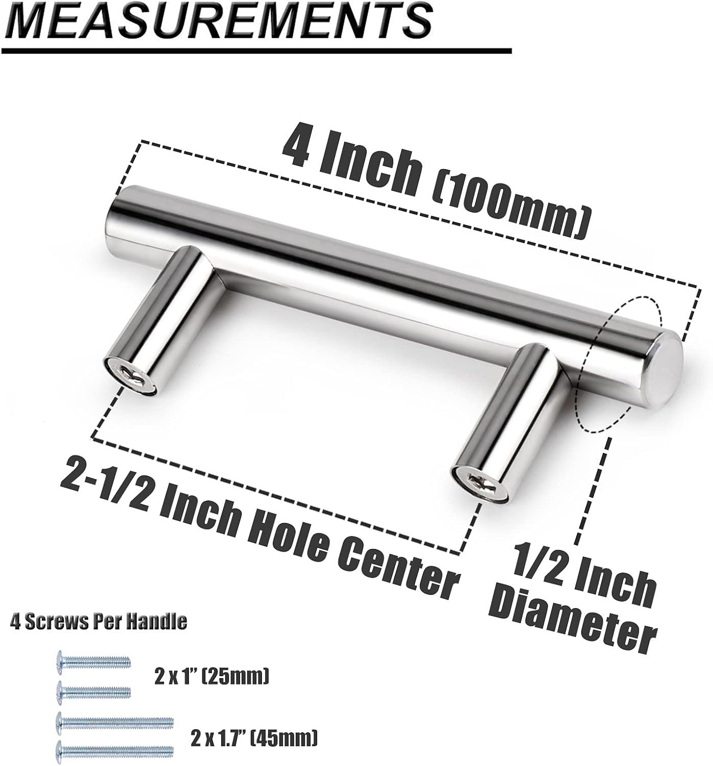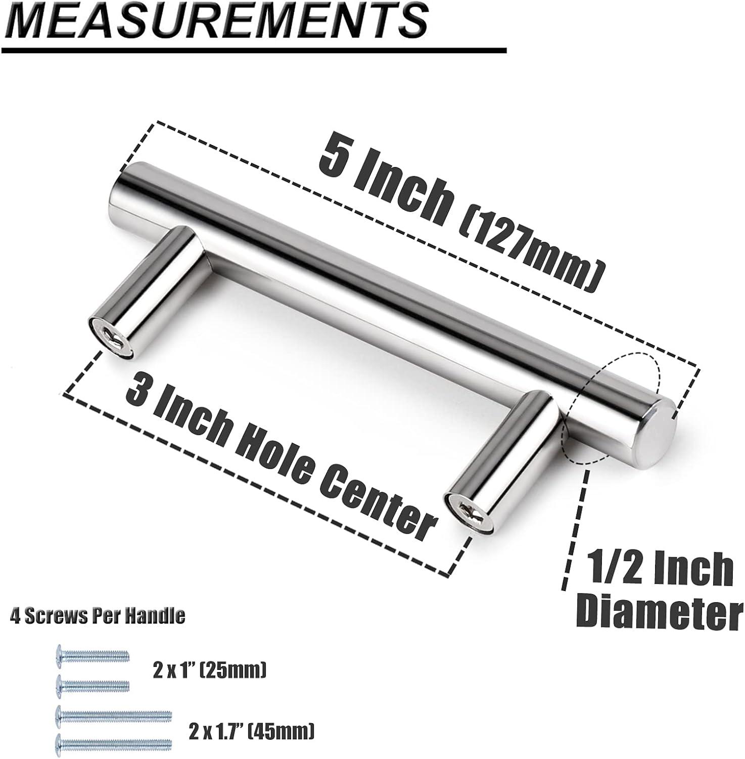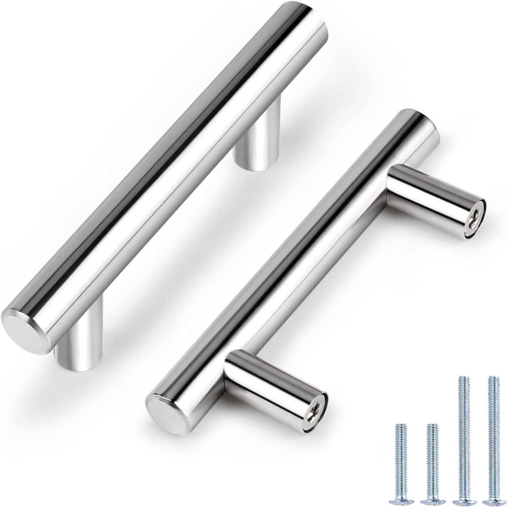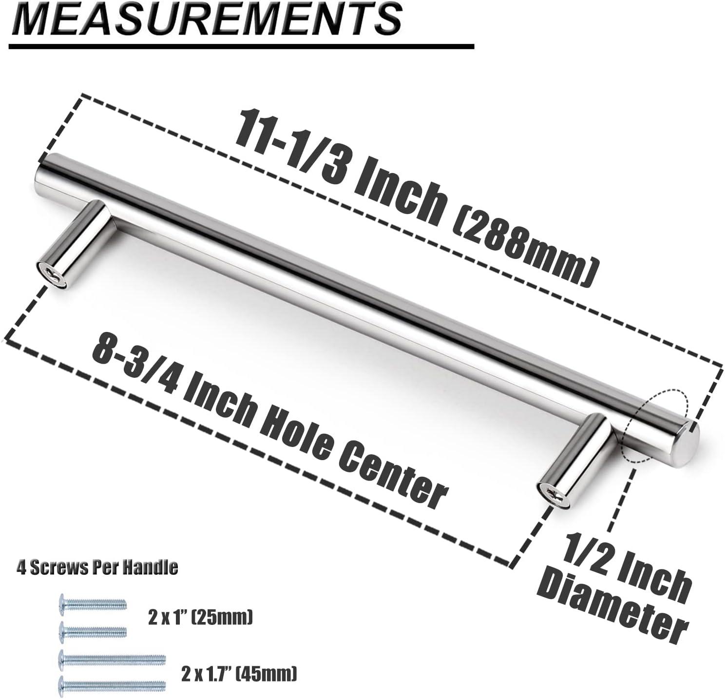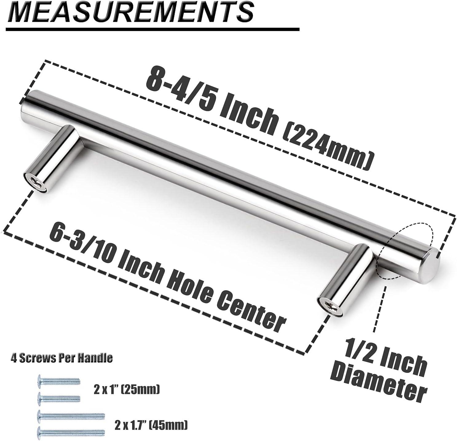 Probrico (5 Pack 10" Center to Center Black Modern Cabinet Pulls Stainless Steel Cabinet Hardware Bedroom Drawer Pull Kitchen Cabinet T Bar Handle Dresser Pulls(Polished Chrome)