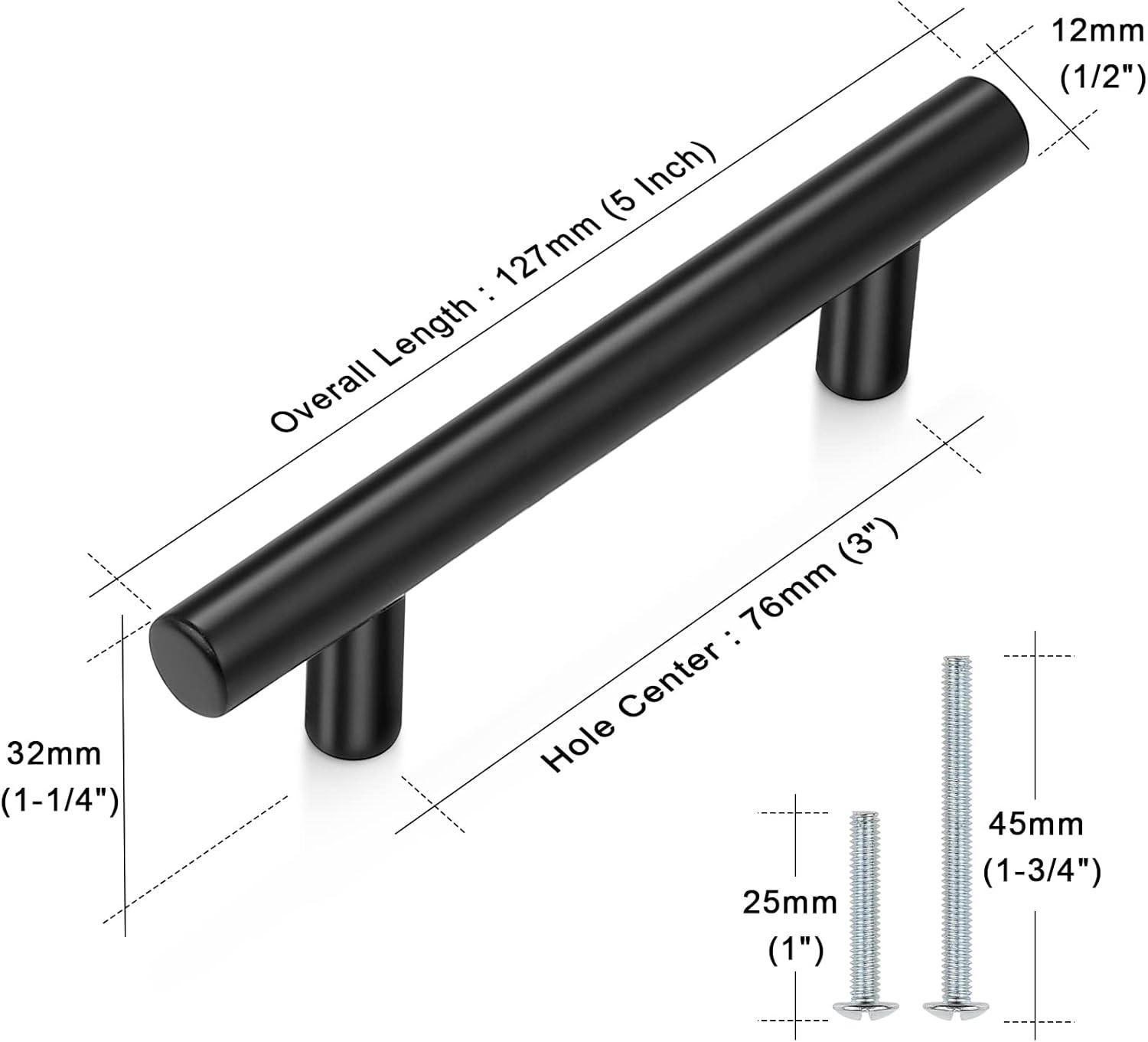Measurements : Hole centers(CC) : 76mm(3 inch), Overall Length : 127mm(5 inch), Diameter : 12mm, Projection : 32mm(1-1/4 inch)