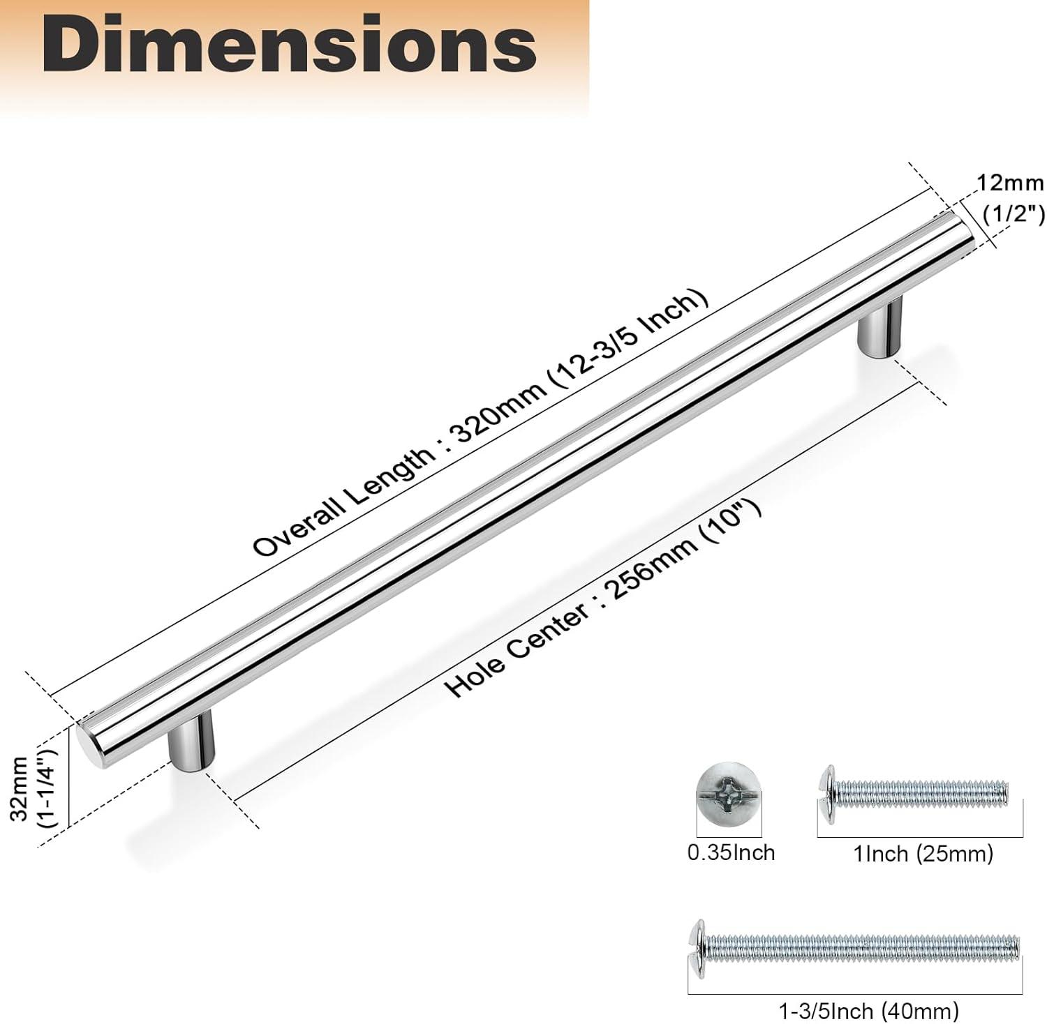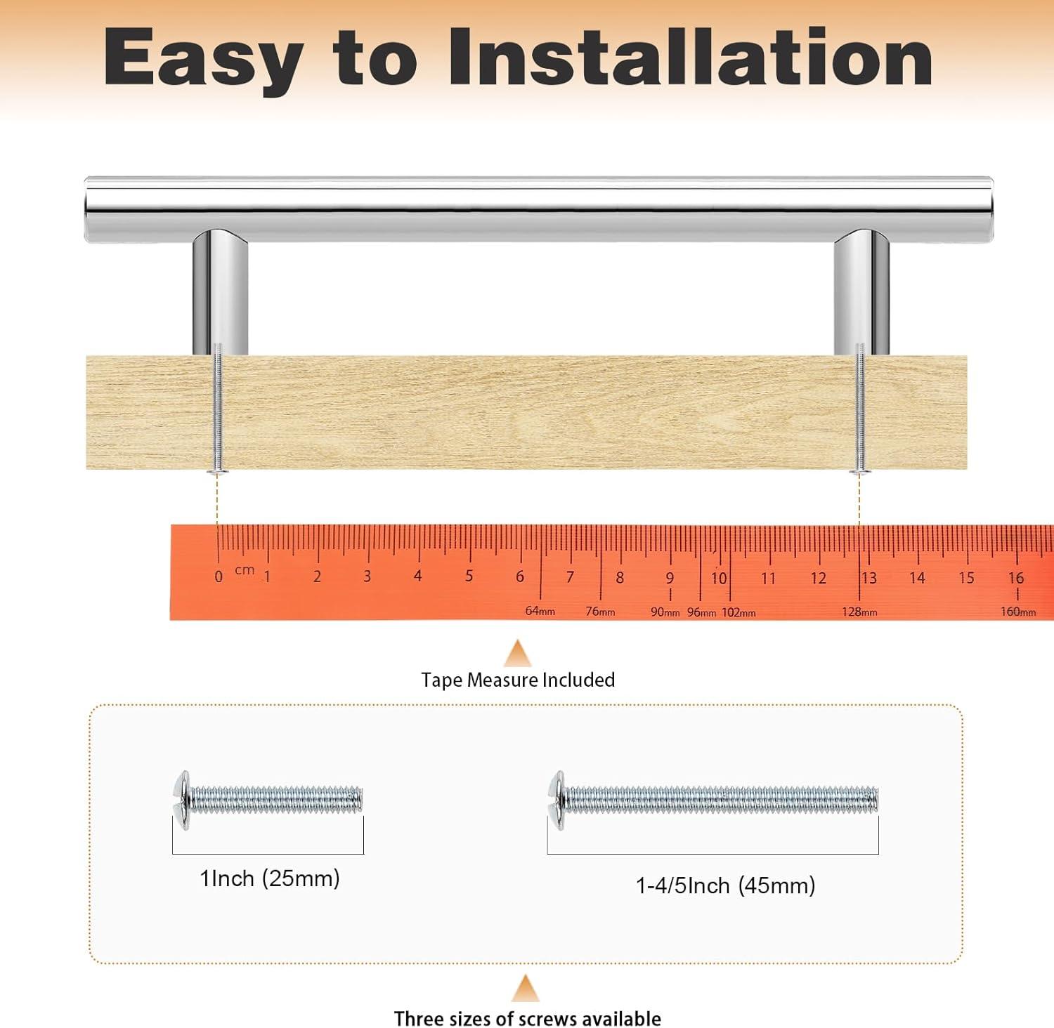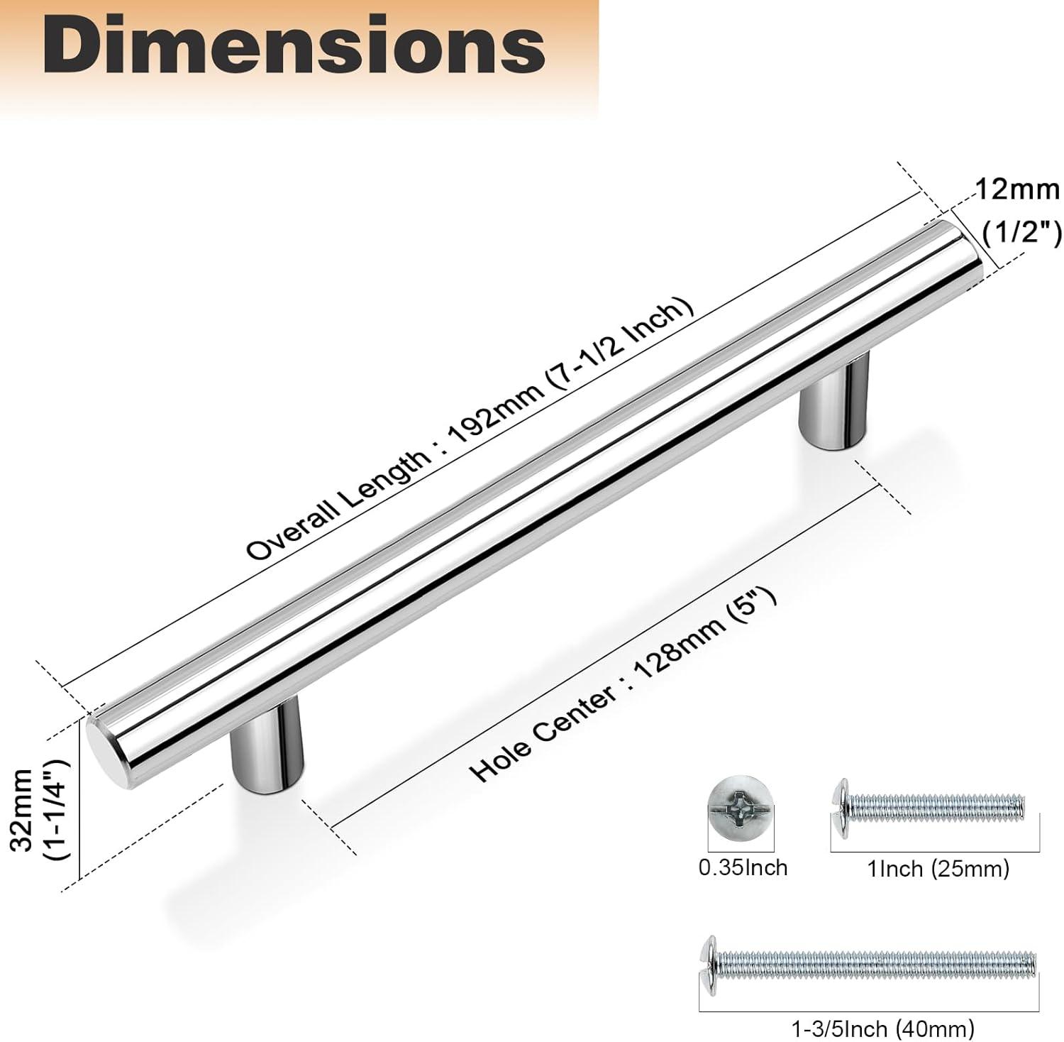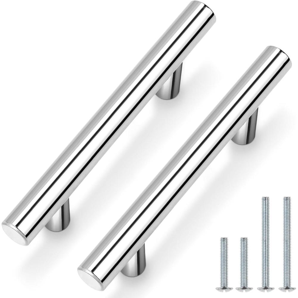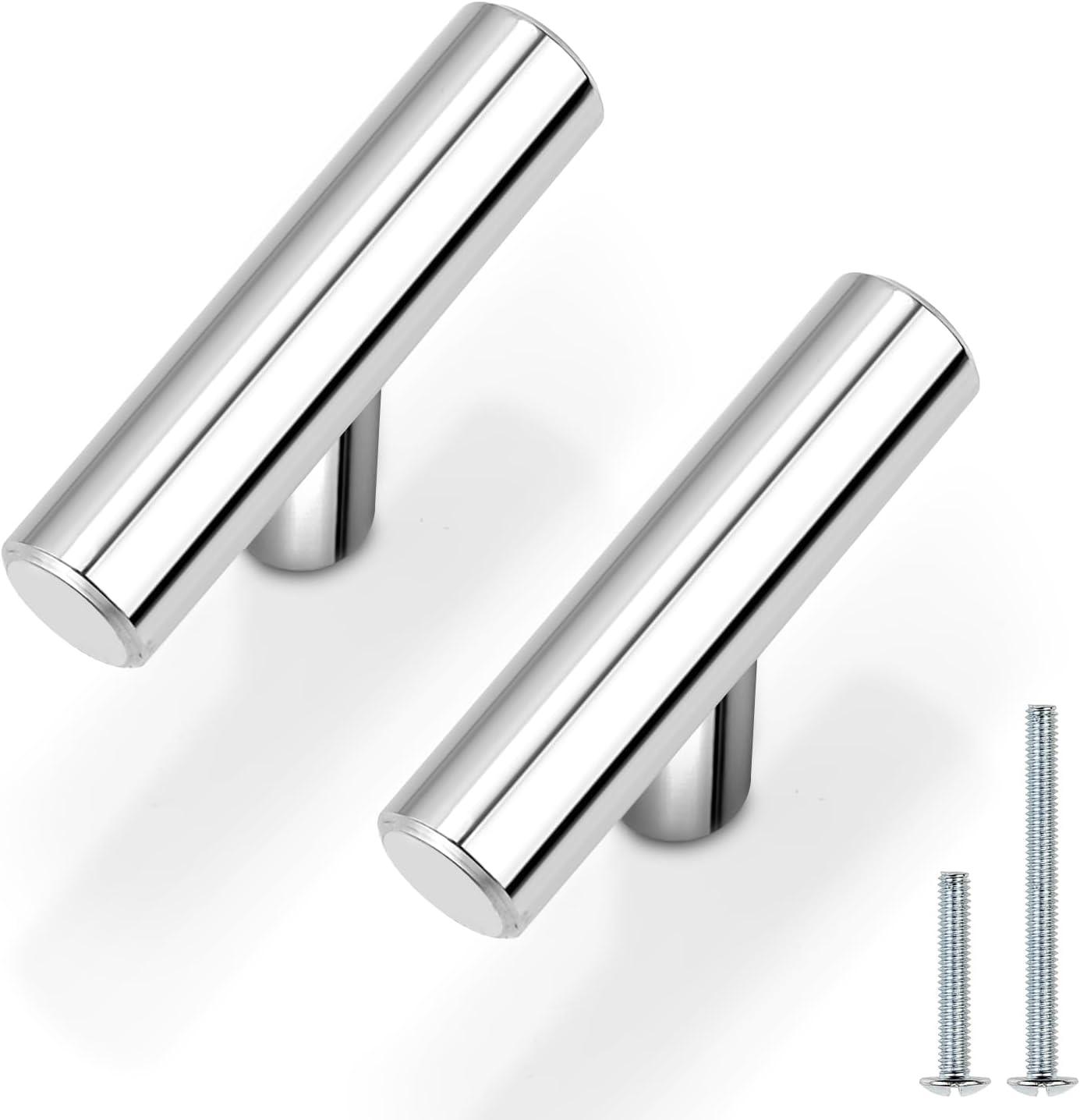 Probrico (50 Pack 3″ Hole Center Euro T Bar Kitchen Cabinet Pulls Stainless Steel Satin Nickel Furniture Dresser Drawer Handles, 5 Inch Total Length(Polished Chrome)