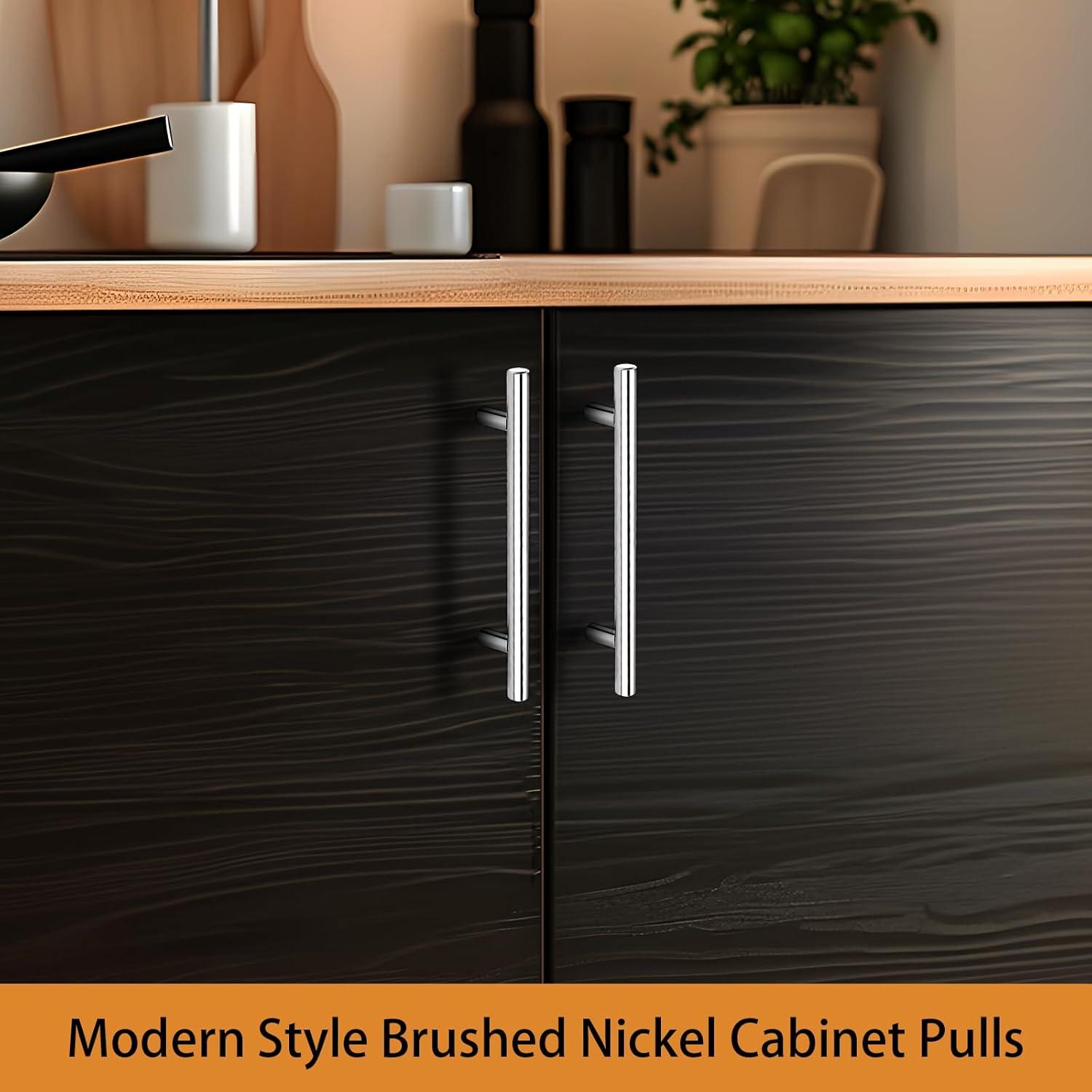 Probrico (50 Pack 3-3/4″ Hole Centers Euro Bar Cabinet Pulls Stainless Steel Satin Nickel Kitchen Cabinet Handles Drawer Dresser Pulls-6 Inch Overall Length