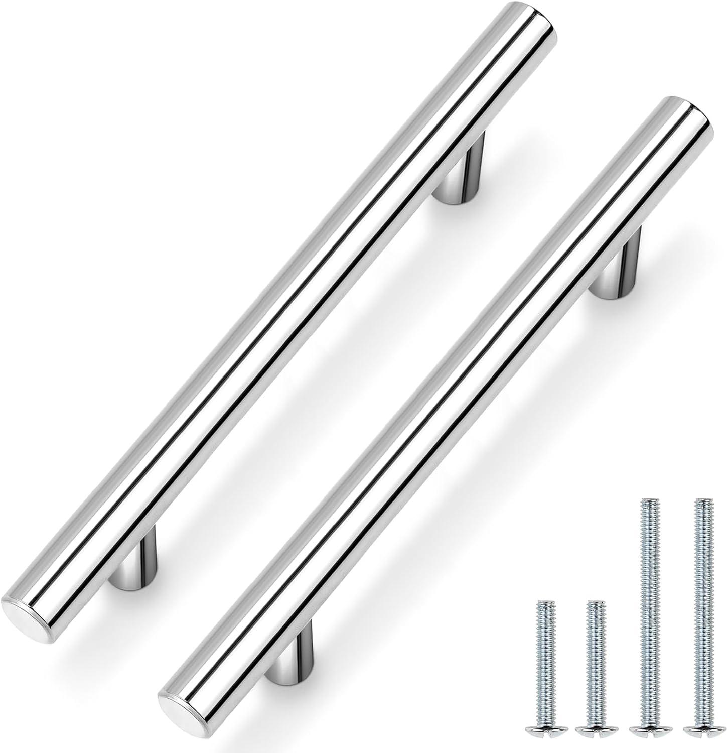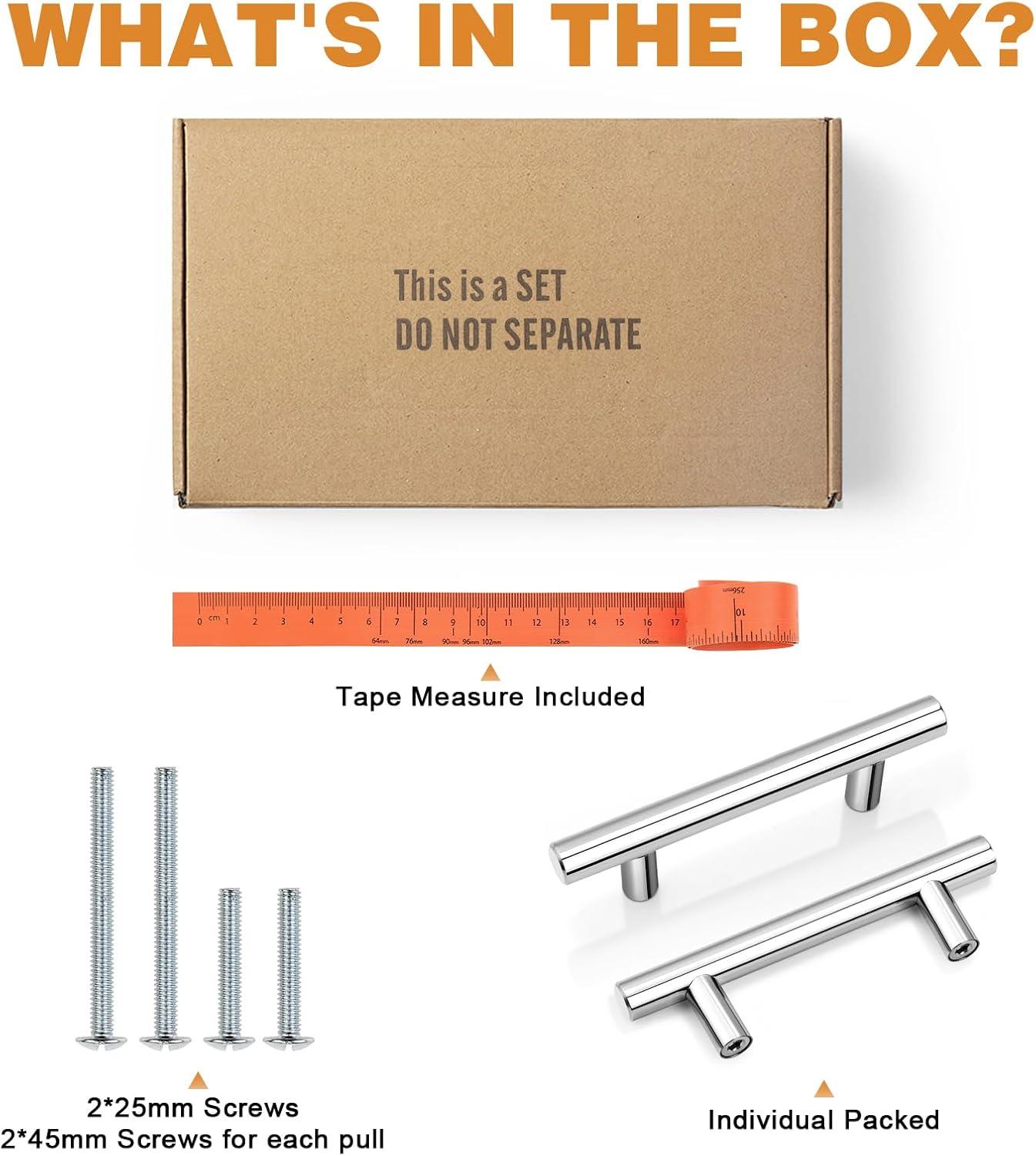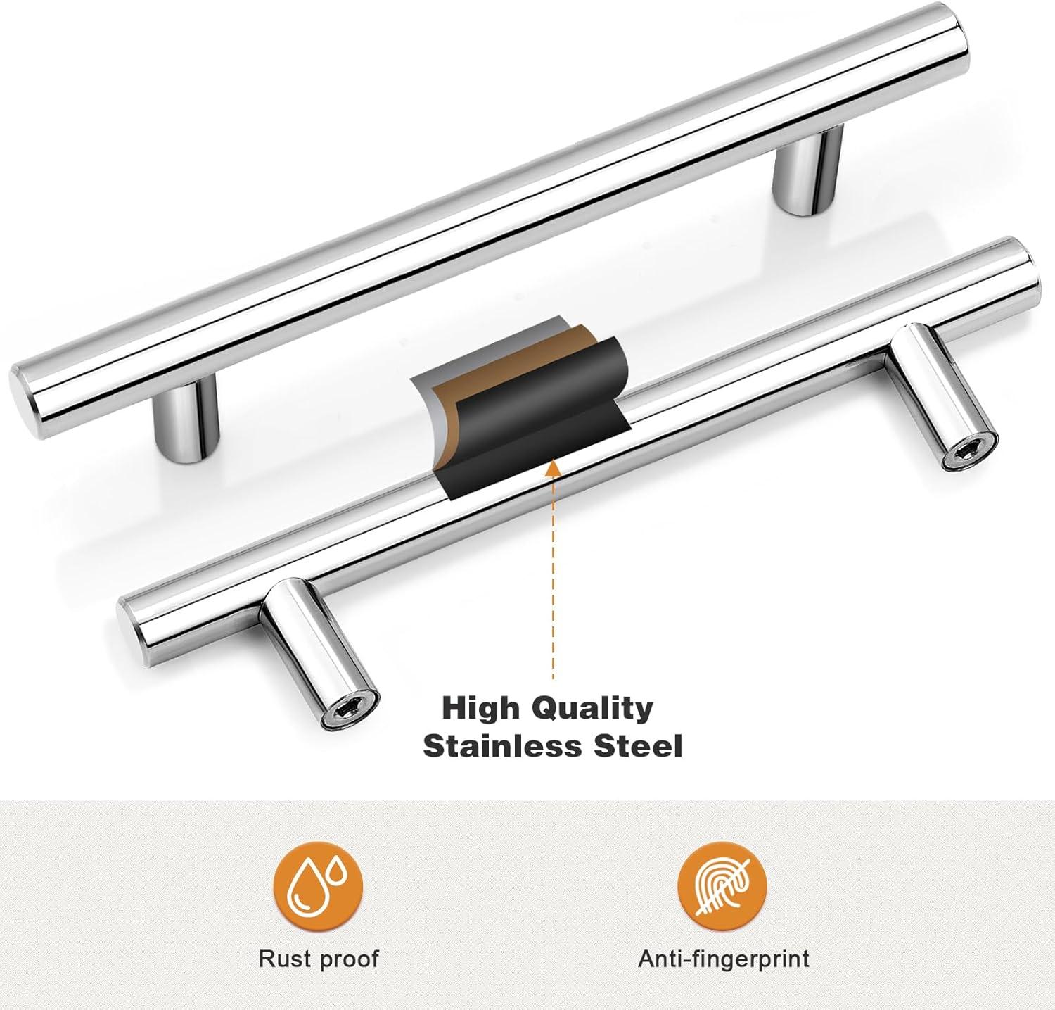 Probrico (50 Pack 3" Hole Center Euro T Bar Kitchen Cabinet Pulls Stainless Steel Satin Nickel Furniture Dresser Drawer Handles, 5 Inch Total Length(Polished Chrome)