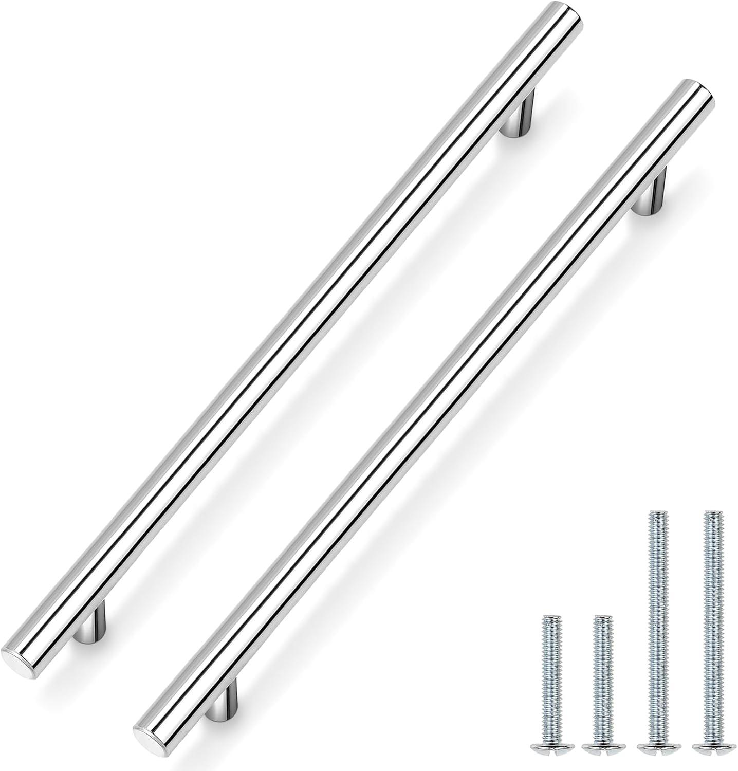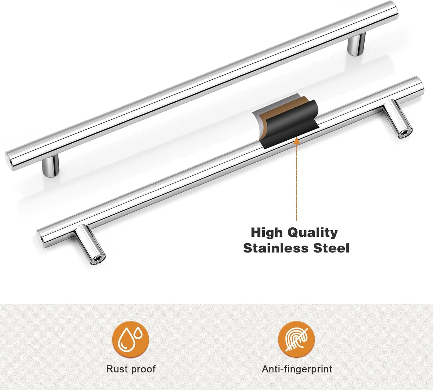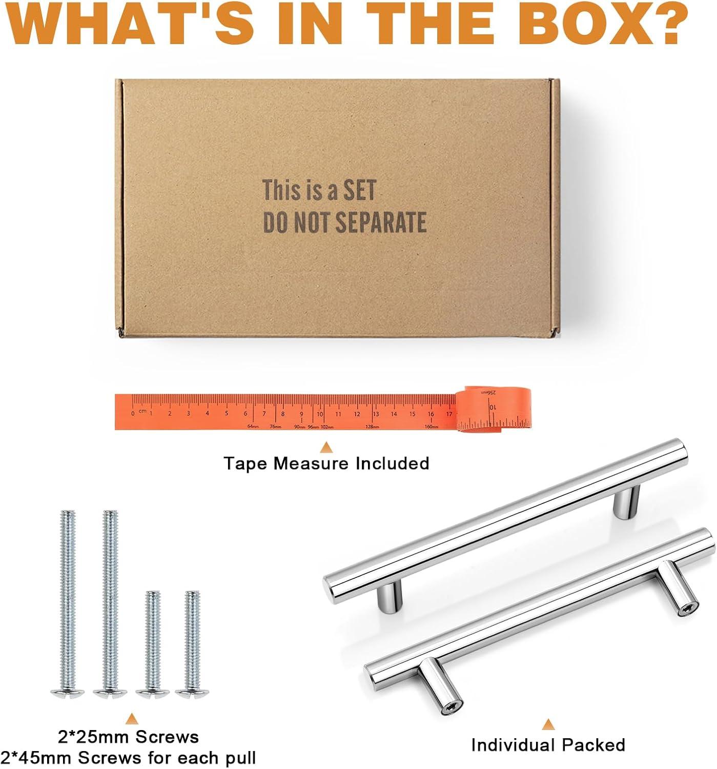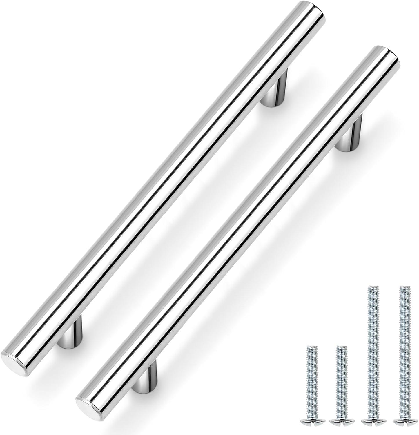 Probrico (50 Pack 3" Hole Center Euro T Bar Kitchen Cabinet Pulls Stainless Steel Satin Nickel Furniture Dresser Drawer Handles, 5 Inch Total Length(Polished Chrome)